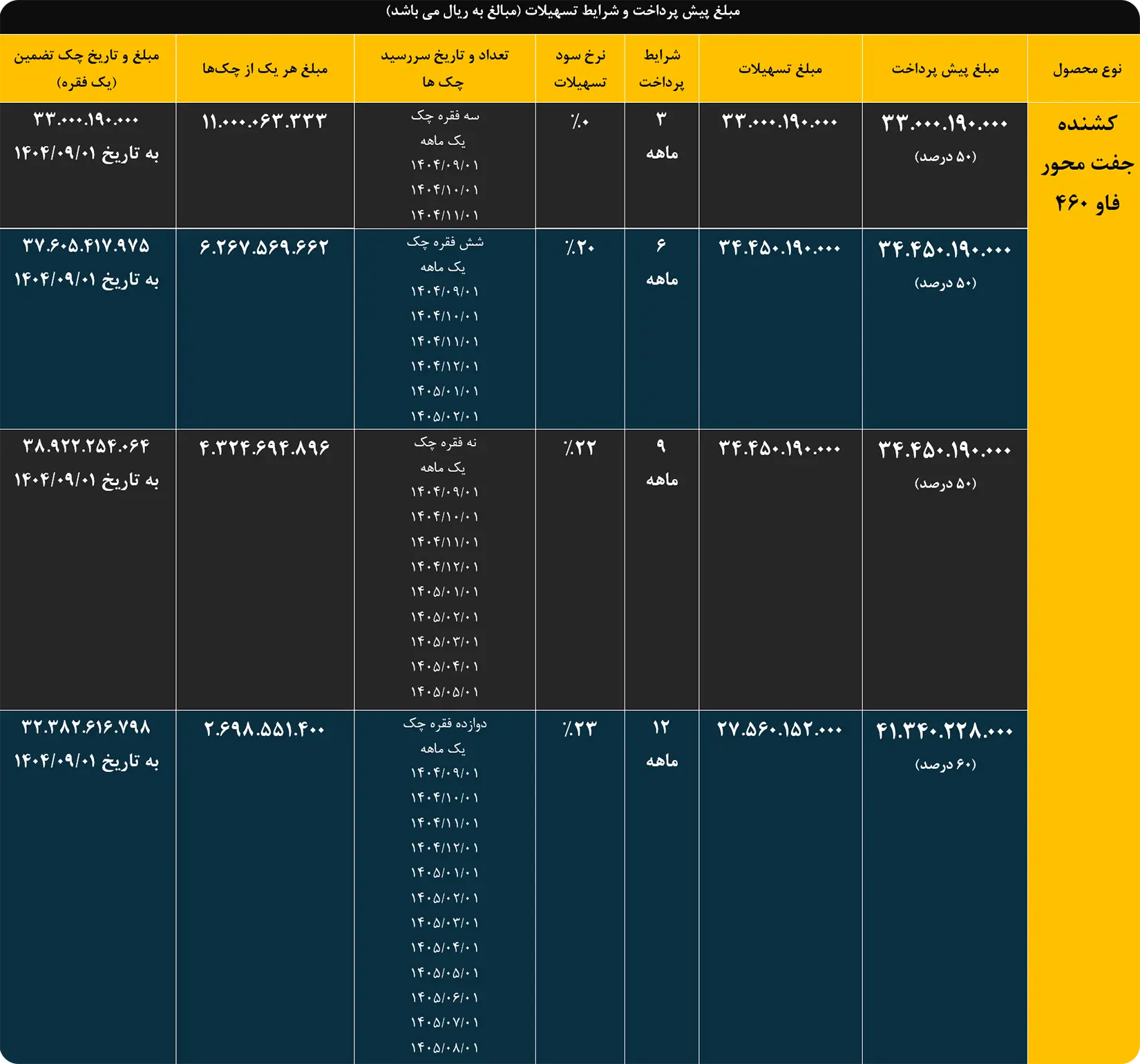 • موعد تحویل کلیه محصولات عرضه شده در این طرح فروش، هفته دوم آبان ماه ۱۴۰۴ می باشد.