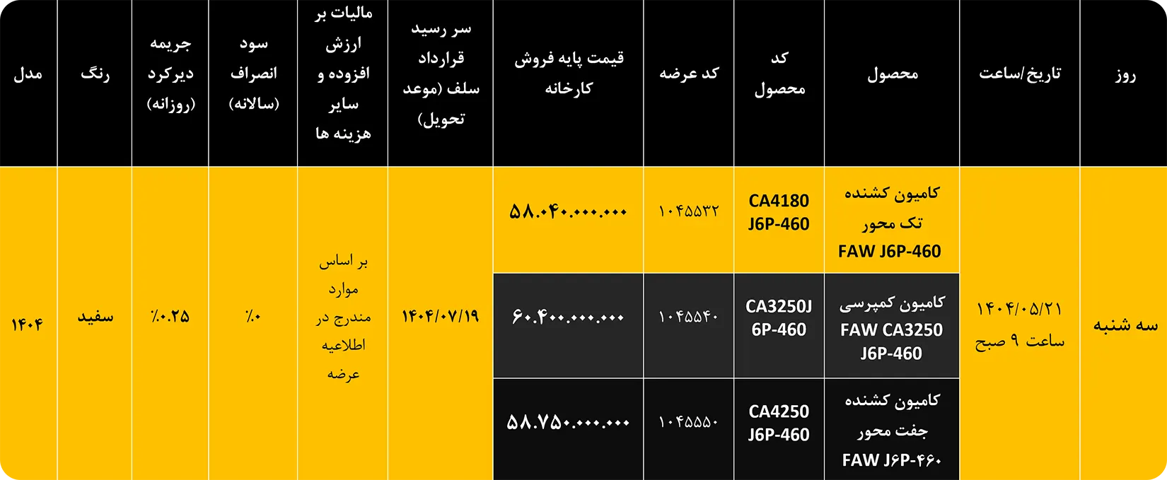عرضه در بورس کالا محصولات سیبا موتور ، شرایط عرضه محصولات شرکت سیباموتور با انتخاب شرکت آوین تابش آوا در بورس کالا به شرح جدول ذیل و با شرایط اعلام شده در اطلاعیه عرضه ارائه می‌گردد.