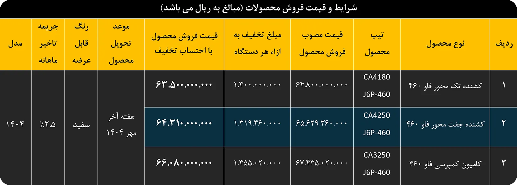 فروش نقدی با تخفیف شرکت سیبا موتور ، فروش نقدی با تخفیف محصولات شرکت سیبا موتور از ساعت ۱۰ صبح روز یک شنبه مورخ ۲۶/۰۵/۱۴۰۴ تا ساعت ۱۶ عصر روز سه شنبه مورخ ۱۸/۰۶/۱۴۰۴ و یا زمان تکمیل ظرفیت از طریق درگاه عاملیت شرکت آوین تابش آوا کد ۳۳۳۱ به شرح جدول ذیل ارائه میگردد. شرکت سیبا موتور شروطی را مطابق موارد مندرج در قواعد و ضوابط بخشنامه که ذیلاً تشریح شده، قرار داده است که در صورت ثبت نام مغایر با این شروط، ثبتنام متقاضی از سوی شرکت سیبا موتور یکطرفه فسخ و وجه واریزی به حساب مبداً مسترد خواهد شد.
