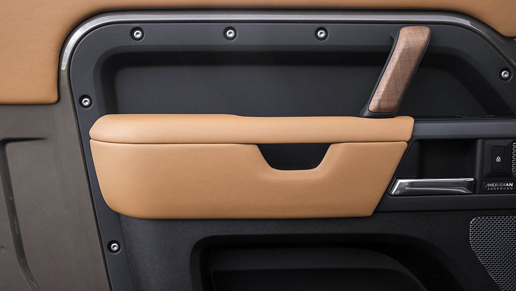 کابین مدل X باعث شده خشونت صنعتی به هنری واقعی تبدیل شود و تریم های فلزی با چرم باکیفیت ترکیب شدهاند. سیستم اطلاعات سرگرمی Pivi Pro لندروور در قلب داشبورد قرار داشته و عملکرد سریعی دارد.
